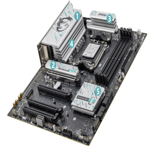 Triple M.2 Connectors: On board 3X M.2 connectors with on PCIe 5.0 solution, strengthened by M.2 Shield Frozr.