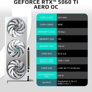GIGABYTE GeForce RTX 5060 Ti AERO OC 16G Graphics Card, 16GB 128-bit GDDR7, PCIe 5.0, WINDFORCE Cooling System, GV-N506TAERO OC-16GD Video Card