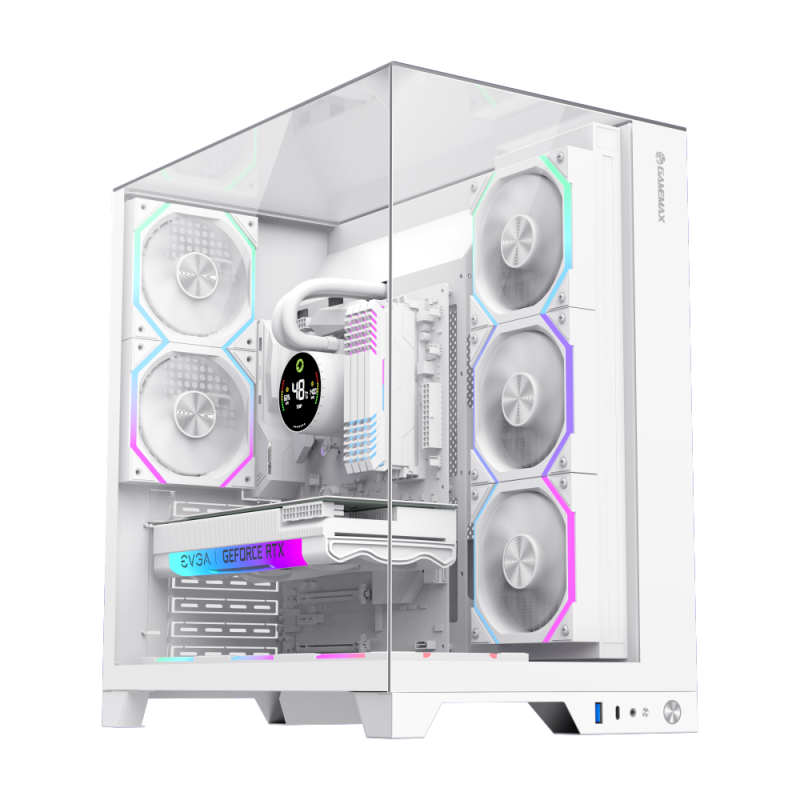Infinity Pro White Panoramic Tempered Glass Mid-Tower Gaming PC Case •Full-View DesignThe three sides feature tempered glass panels, allowing clear visibility of the RGB lighting and components inside the case, enhancing the overall aesthetics and creating a cool gaming environment. •Superior Cooling PerformanceThe case supports up to 8 RGB fan installation positions (including 2x 120mm fans) and can accommodate various water cooling configurations, ensuring the system maintains optimal temperatures under high load, thus enhancing gaming performance. •Strong CompatibilitySupports ATX, M-ATX, and ITX motherboards, making it suitable for various types of hardware, allowing players to flexibly configure their gaming setups to meet different needs. •Smart I/O Interface DesignEquipped with multiple USB ports (including USB 3.0 and TYPE-C) for convenient device connections, along with audio support to ensure users enjoy the best sound experience during gaming. •Excellent ExpandabilityThe case offers multiple internal storage bays, including 1x 3.5-inch hard drive bay and 3x 2.5-inch SSD bays, making it easy for players to expand their storage space to meet the growing demands of gaming.