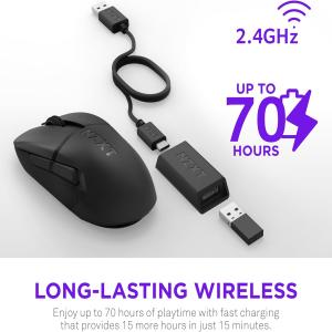 • Long-Lasting Battery: Get up to 70 hours of playtime on a single charge, with fast charging that restores 15 hours of battery in just 15 minutes.* *Battery life tested at standard 1,000 Hz polling rate. Higher rates will reduce battery duration.