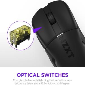 • Optical Switches: Rapid 0.2 ms response time with no double-clicking, pre-travel, or debounce delay, plus a 100-million click lifespan.