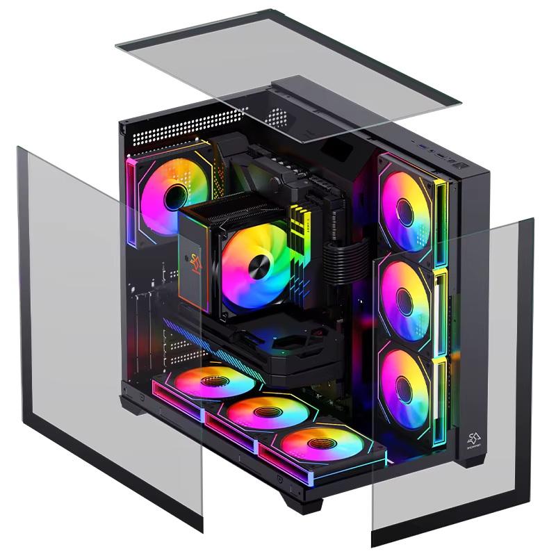 SNOWMAN Gaming PC Case supports E-ATX, ATX, M-ATX, and Mini-ITX motherboards with a durable SPCC 0.8mm steel frame and tempered glass side panels for optimal showcase. It accommodates GPUs up to 400mm and CPU coolers up to 165mm, featuring top 360mm and rear 120mm water cooling support. Certified by RoHS and EPR standards, ensuring compliance with EU environmental and safety regulations, offering market access and reliable quality assurance.
