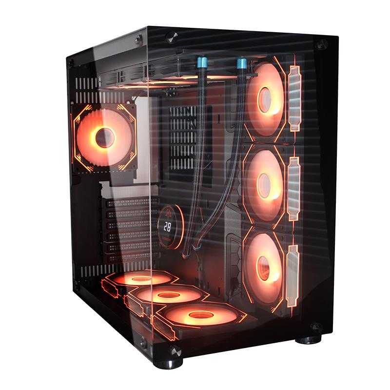 SNOWMAN Gaming PC Case supports E-ATX, ATX, M-ATX, and Mini-ITX motherboards with a durable SPCC 0.8mm steel frame and tempered glass side panels for optimal showcase. It accommodates GPUs up to 400mm and CPU coolers up to 165mm, featuring top 360mm and rear 120mm water cooling support. Certified by RoHS and EPR standards, ensuring compliance with EU environmental and safety regulations, offering market access and reliable quality assurance.