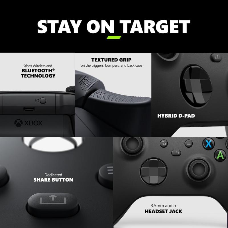 • STAY ON TARGET: New hybrid D-pad and textured grip on the triggers, bumpers, and back-case.