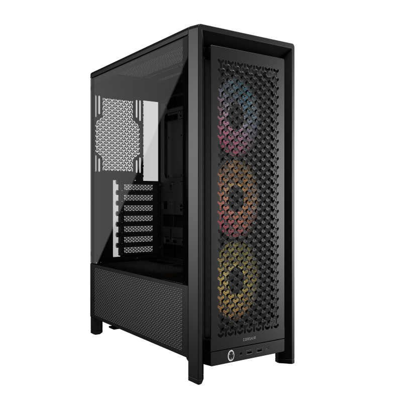 3x CORSAIR RS ARGB PWM Fans – High-performance fans pre-installed in the front of case. Support daisy-chainable 4-pin PWM connections and Zero RPM mode for near-silent operation at low loads. Each Fan has eight LEDs and easily controllable with your motherboard’s +5V ARGB connector