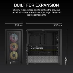 CORSAIR 4000D RS ARGB Frame Modular Mid-Tower ATX PC Case – High Airflow, 3X Pre-Installed RS ARGB Fans, InfiniRail™ Fan Mounting System, ASUS BTF, MSI