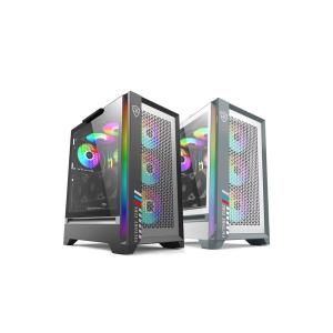 This full tower gaming PC case features a side window design, made of durable steel material with high airflow for optimal cooling. It supports MicroATX and ITX motherboards, ideal for desktop gaming setups.